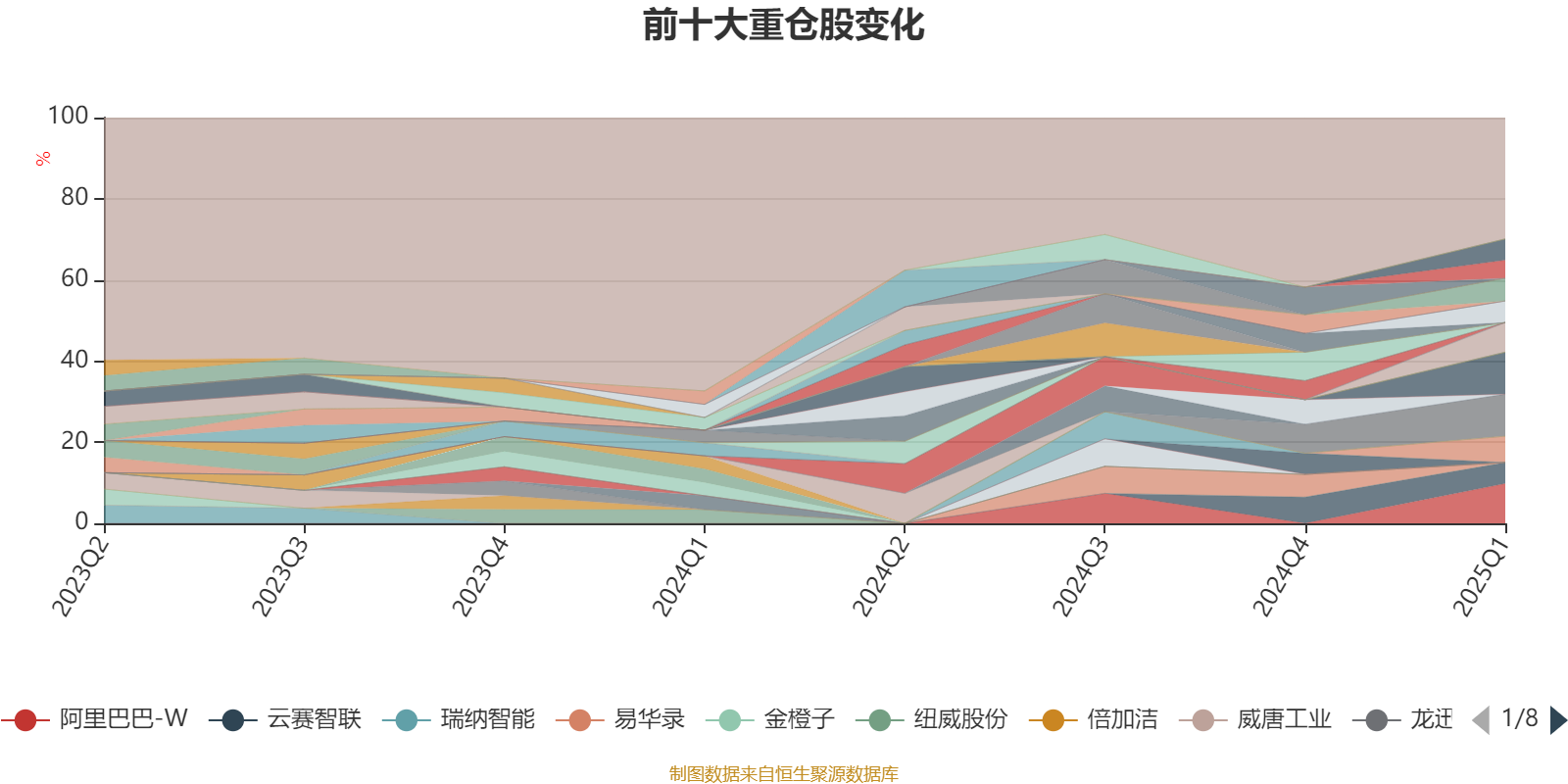 截至2025年一季度末,基金十大重仓股分别是腾讯控股、小米集团-W、阿里巴巴-W、理想汽车-W、深信服、领益智造、恒玄科技、鸿泉物联、云赛智联、用友网络。