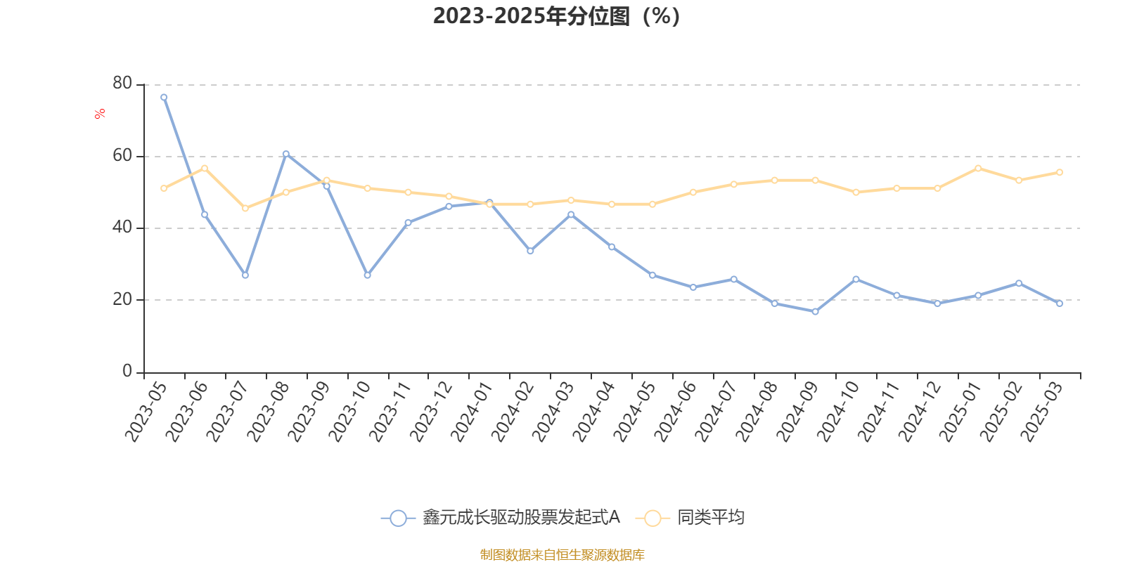 通过所选区间该基金净值增长率分位图,可以观察该基金与同类基金业绩比较情况。图为坐标原点到区间内某时点的净值增长率在同类基金中的分位数。
