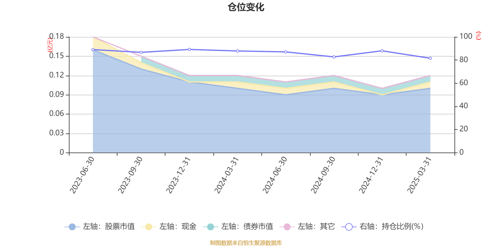 据定期报告数据统计,成立以来平均股票仓位为86.5%,同类平均为88.14%。2023年末基金达到89.18%的最高仓位,2025年一季度末最低,为81.54%。